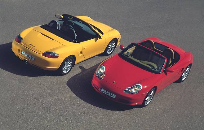 결국 포르쉐도 동참했다. 1996년 말, 550 스파이더를 계승하는 2인승 미드십(MR) 로드스터, 박스터를 선보였다. 당시 911 한 차종으로는 경쟁력을 갖추기 어려웠고, 더 합리적인 가격의 박스터를 내세워 판매량을 높이고자 했다. 뒤 엔진‧뒷바퀴 굴림(RR)이라는 방식에 얽매인 911과 달리, 박스터는 엔진을 뒤 차축 앞에 얹어 더욱 이상적인 무게배분을 실현했다.
