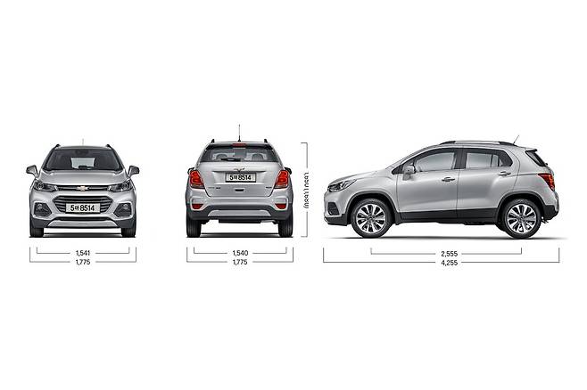 셀토스는 코나 대비 전장 110mm, 전고 50mm, 휠베이스 30mm 큰 차체를 확보했다. 쉐보레 트랙스는 전장 4255mm, 전폭 1775mm, 전고 1680mm, 휠베이스 2555mm로 셀토스가 전장 120mm, 휠베이스는 75mm 길다. 반면 전고는 트랙스가 65mm 높게 나타난다.