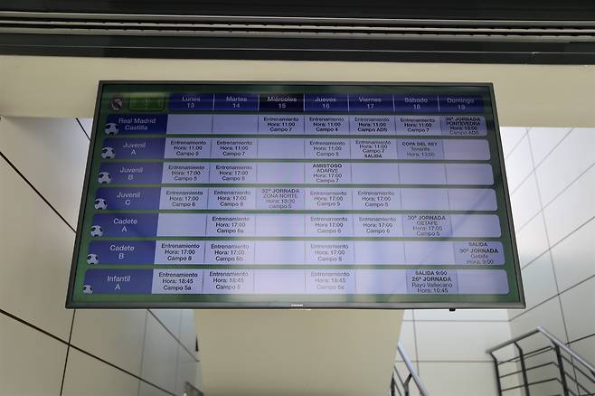 안내 데스크 옆 큰 모니터에는 오늘 각 훈련장에서 어떤 훈련이 있는지, 연령별 팀들의 훈련 시작 시간이 자세하게 적혀 있습니다. 아쉽게도 리그 순위가 확정된 1군의 연습은 없는 날입니다. 유럽 챔피언스리그 결승에 만일 레알 마드리드가 올라갔다면, 아마도 1군의 연습 장면을 조금이라도 볼 수 있었을 것입니다. 만일 손흥민 선수가 뛰는 토트넘이 스페인 팀과 격돌했다면 스페인 현지에서는 아마도 훨씬 더 뜨거운 분위기를 연출했을 것입니다. 마드리드에서 챔피언스리그 결승이 열리는데, 레알 마드리드도 없고 바르셀로나도 없고 아틀레티코 마드리드도 없고, 잉글랜드 프리미어리그의 두 팀이 올라왔다는 것에 스페인 사람들도 낯설어 하는 것 같았습니다.