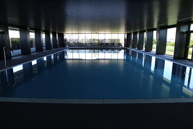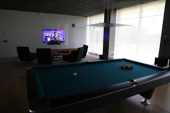 선수단 숙소에는 당구장도 있고 탁구장도 있고 수영장도 있었습니다. 선수들은 그러나 보통 여기에서 잠을 자지는 않는다고 합니다. 훈련 끝나면 집으로 퇴근하기 때문이지요. 자기 집에 있는 시설이 여기보다 훨씬 더 좋을 것이라고 설명합니다.