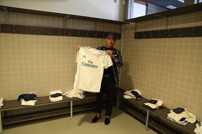 레알 마드리드 출신의 베테랑 프란시스코 라미레즈 라미레즈(애칭, 파코)가 자신의 유니폼을 들고 사진을 찍습니다. 레알 마드리드에서 뛰었던 베테랑들의 축구화와 유니폼을 모아놓은 것을 보면 베테랑에 대한 예우도 잘하고 있다는 느낌을 받습니다.