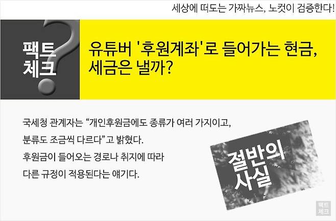 국세청의 판단이 기준이 되기 때문에 단정할 수는 없지만, 유튜버들이 얻는 '개인 후원금'은 이런 비과세대상 요건과는 거리가 있어 보인다.