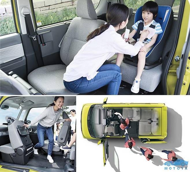 새로운 탄토에는 운전석을 뒷좌석 끝까지 슬라이드할 수 있는 기능을 추가할 예정이다. 이 기능은 뒷좌석으로의 접근성을 높이는 한 편, 좁은 공간에 주차를 했을 경우에도 반대편의 슬라이딩 도어를 통해 운전석에 접근할 수 있는 등, 다양한 방법으로 사용할 수 있다. 조수석측 도어와 슬라이딩도어 사이에 B필러가 존재하지 않는 특유의 구조는 계속 유지한다.