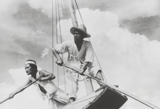 영화 ‘한강’의 젊은 뱃사공 성근(최운봉)과 노뱃사공 명삼의 아들 재수(이금룡·사진 오른쪽). 영화의 마지막, 재수도 어엿한 뱃사공으로 성장하게 된다. 한국영상자료원 제공