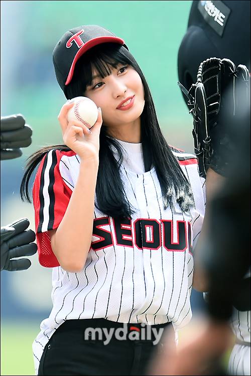 트와이스 모모가 14일 오후 서울 잠실야구장에서 열린 '2019 프로야구 KBO리그' LG 트윈스 vs 두산 베어스의 경기에서 시구를 했다.