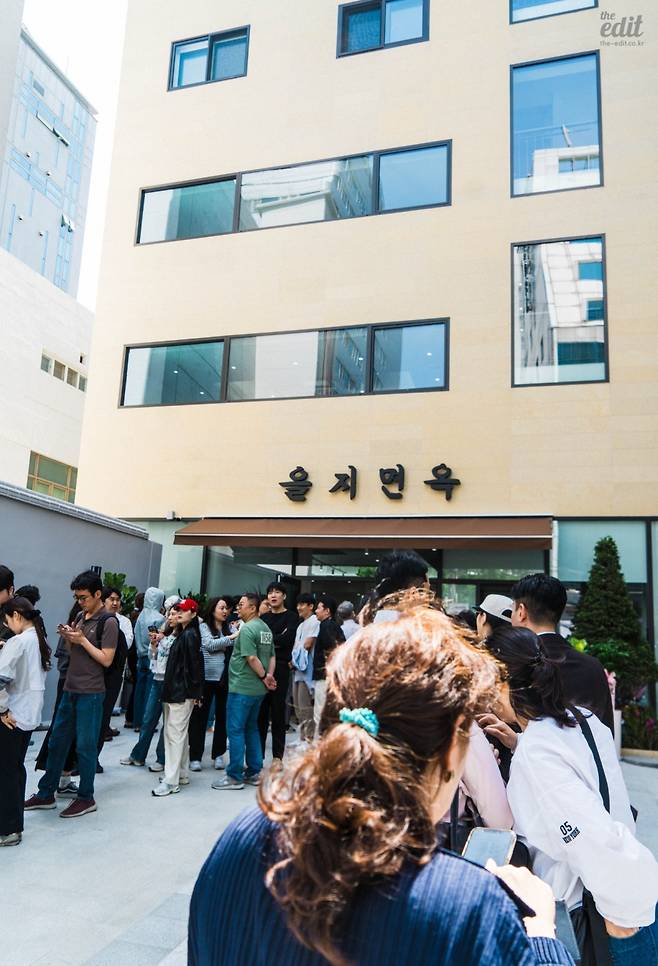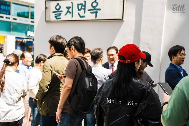 영업 시작 시간은 오전 11시 30분. 나는 11시 40분에 도착했다. 앞에는 70명이 대기 중이었다. 아직은 봄 날씨라 그렇게 덥지 않아서 웨이팅이 힘들지 않았다. 게다가 5층짜리 을지면옥 건물이 그늘을 만들어주니 기다릴만했다.
