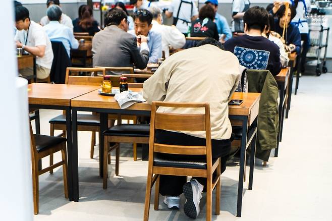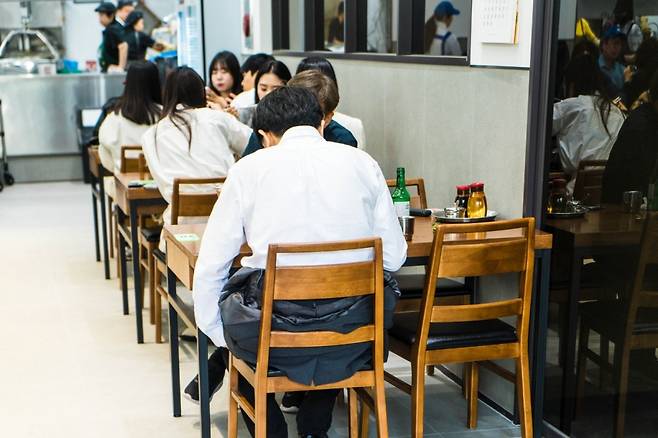 대부분은 2명 혹은 3명 이상으로 구성된 파티원이었고, 인근 직장의 샐러리맨처럼 보였다. 목에 건 사원증, 와이셔츠와 넥타이, 서로를 부르는 호칭을 들으니 확실히 그랬다. 인상적이었던 건 기다리는 사람들의 표정이었다. 지루해하거나 힘들어 보이는 사람이 없었고, 마치 T익스프레스를 타기 위해 기다리는 것처럼 설레는 표정이었다. 이곳에 있는 사람들은 아마 나와 비슷한 사람인 것 같아서 유대감마저 느껴졌다. 음식 하나에 행복을 느끼는 사람들. 마뗑킴 바람막이를 입든 넥타이를 매든 성별이 어떻든 나이가 어떻든 냉면 하나를 먹기 위해 아침부터 줄을 선 사람들은 모두가 행복해 보였다. 나도 그랬다.