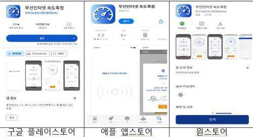 [무선인터넷 속도측정 앱 다운로드 방법. (과기정통부 제공=연합뉴스)]
