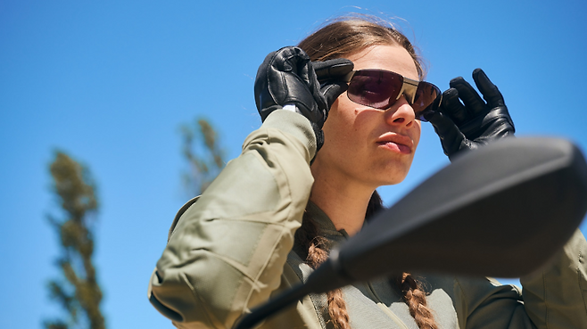 또한, 선글라스 역할을 하는 착색 렌즈와 헬멧의 선바이저를 착용해도 시야를 방해하지 않는 85% 투명도의 렌즈 중 선택할 수 있다. 저시력자의 경우 도수를 맞출 수도 있다.