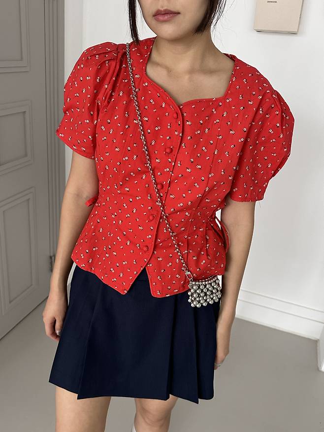 프린트 되어 있는 스퀘어넥 플로럴 블라우스!