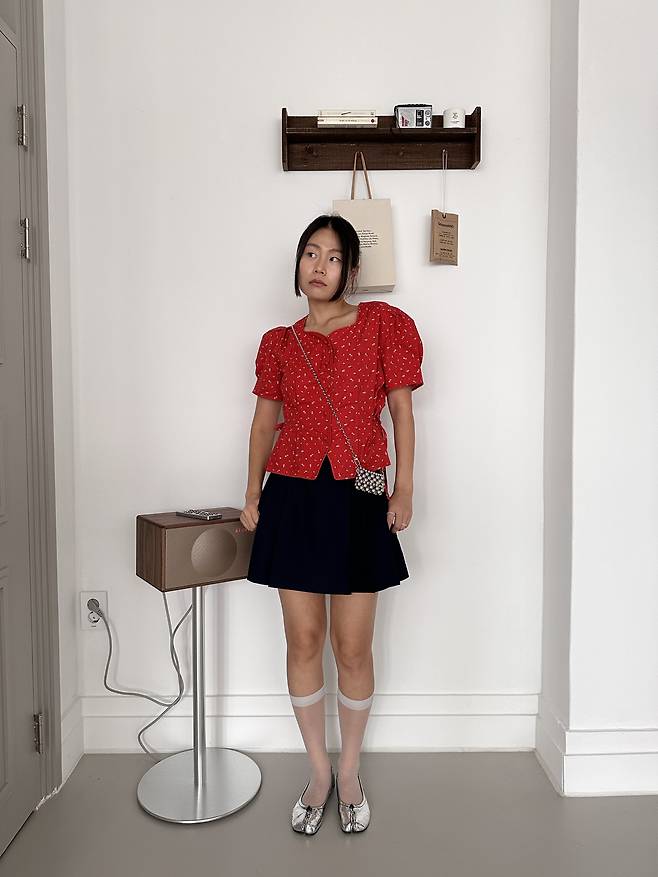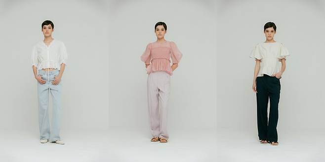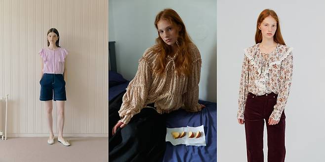러플 디테일과 벌룬 소매가 러블리한 무드를 강조해 주는데요.