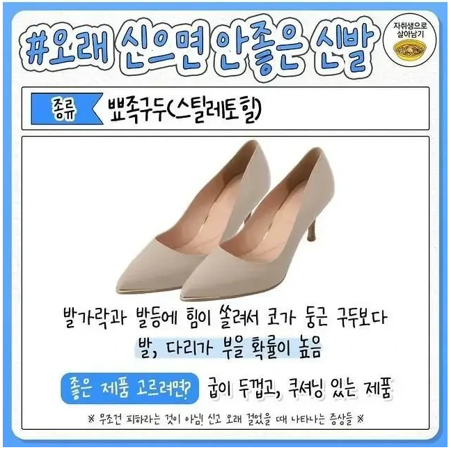 지금부터, 많은 사람들이 무심코 신지만 장시간 착용 시 건강에 안 좋은 영향을 줄 수 있는 신발들을종류별로 정리해서 알려드릴게요.