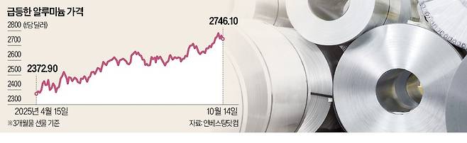 알루미늄 가격이 상승한 이유는 복합적이다. 최근 가격 상승세는 지난 4월부터 시작됐다. 당시 도널드 트럼프 미국 대통령이 알루미늄 수입 관세를 대폭 인상하면서다. 트럼프 대통령이 각국을 대상으로 상호관세까지 부과하고 나서 글로벌 무역의 불확실성도 커졌다. 유럽이 우크라이나와 전쟁 중인 러시아의 알루미늄 수입을 제한한 것도 알루미늄 가격 상승을 부추긴 요인이다.