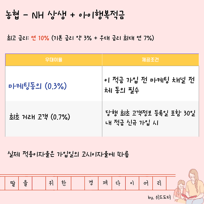 최고 금리: 연 10% (기본 금리 약 3% + 우대 금리 최대 7%)