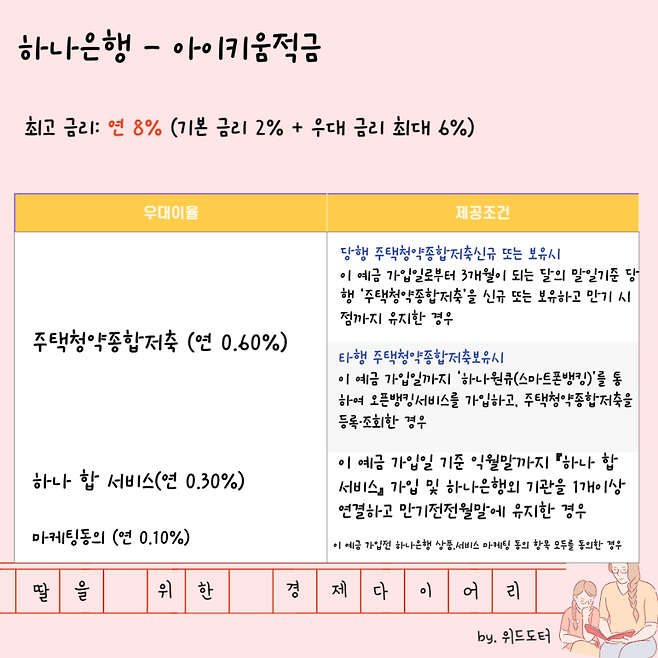 최고 금리: 연 8% (기본 금리 2% + 우대 금리 최대 6%)