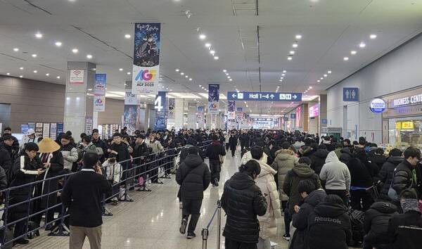 체감온도가 영하권까지 떨어진 5일 아침, 경기 고양시 킨텍스 제1전시장 앞에는 두꺼운 패딩과 담요로 중무장한 관람객들이 끝이 보이지 않는 줄을 만들고 있었다. 전날 내린 눈이 녹지 않아 주변은 빙판길로 변했지만, ‘AGF 2025’를 향한 팬들의 발걸음은 오히려 더 빨라졌다. 원하는 굿즈와 체험 부스를 선점하려 전날 밤부터 텐트를 치고 대기한 ‘오픈런’ 관람객도 적지 않았다.