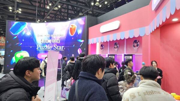NHN 부스도 눈에 띄었다. 애니메이션 IP를 활용한 퍼즐 게임 ‘최애의 아이: 퍼즐 스타’ 부스는 핑크색 구조물과 대형 키비주얼로 꾸며졌는데 남성 관람객 비중이 특히 높았다. 맞은편 RPG ‘어비스디아’ 존에서는 DJ가 게임 음악을 섞어 틀고, 버튜버와 함께하는 이벤트가 이어지면서 “작은 클럽 같다”는 반응이 나왔다.