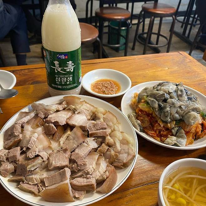 식당 이름만 들으면 인천 한 가운데 있을 것 같지만 굴보쌈 맛집 인천집은 인천이 아닌 을지로에 위치해 있다. 50년 전통 굴보쌈 맛집으로 보통 제육 굴보쌈을 먹고 조개 칼국수로 마무리하는 것이 이 곳의 국룰. 숭덩숭덩 투박하게 썰어 낸 제육과 굴과 김치의 조합이 아주 환상.