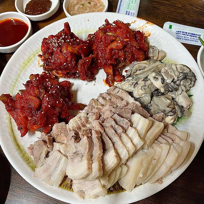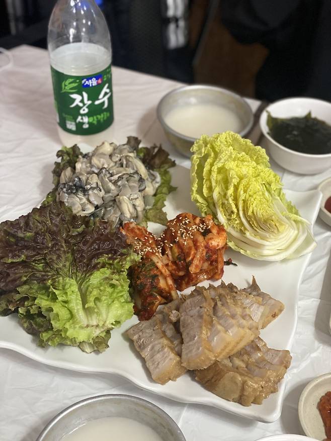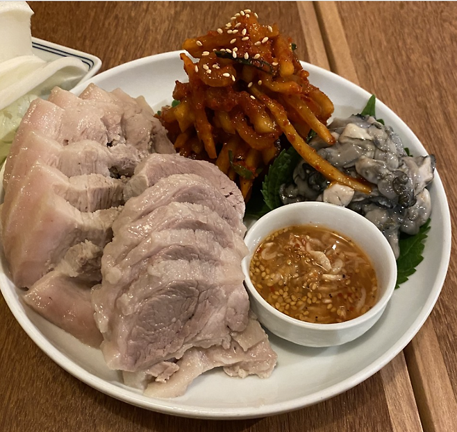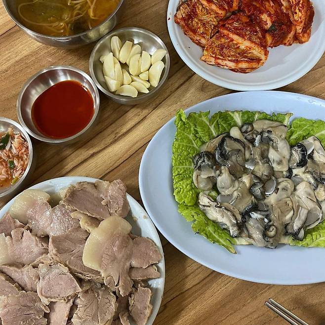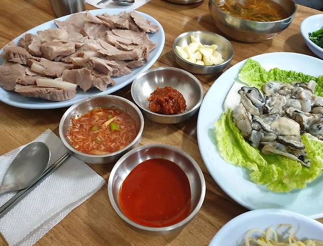 ▲메뉴: 제육 굴보쌈 중 50,000원 / 조개칼국수 10,000원