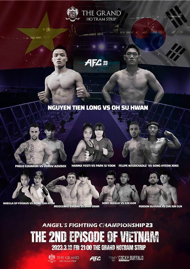 [스포티비뉴스=이교덕 격투기 전문기자] 엔젤스파이팅챔피언십(AFC)은 오는 10일 베트남 호짬그랜드호텔 특설 케이지 에서 23번째 넘버 대회를 연다. 지난해 10월 29일 첫 대회에 이어 두 번째 베트남 대회다.