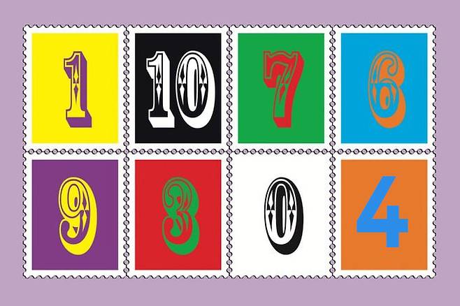 8가지 색깔의 숫자로 스탬프가 찍혀 있습니다. 물음표에 들어갈 숫자는 무엇일까요?