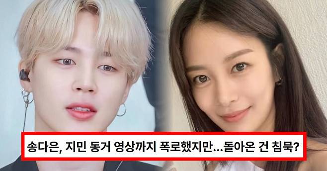 배우 송다은이 그룹 방탄소년단 지민과 열애 사실을 공개했지만, 지민 측 소속사를 침묵을 지키고 있습니다.