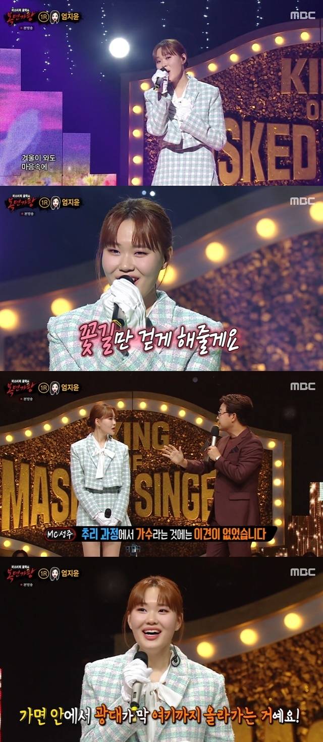 또 엄지윤은 "인기를 실감하냐"는 물음에 "'복면가왕'에서 불러줬다는 게 인기 초절정 아닌가 싶다"고 말했다.