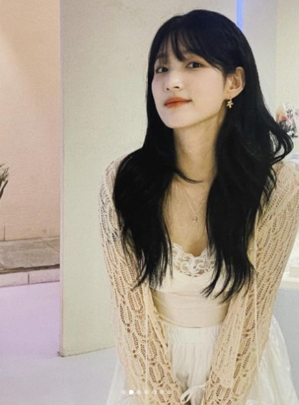 사진 속 율희는 웨이브 진 긴머리에 원피스를 입은 청순미 넘치는 모습이다.
