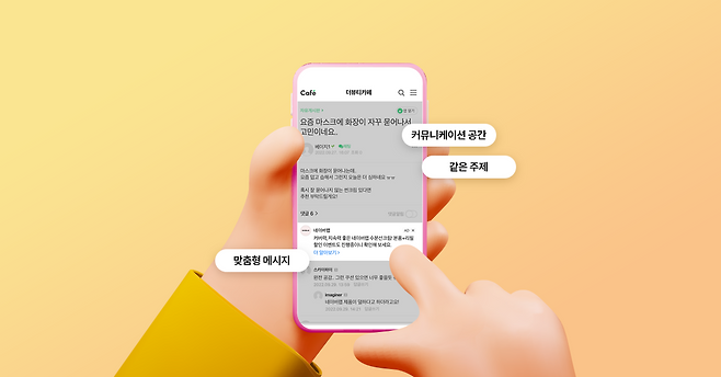 네이버의 성과형 디스플레이 광고에 추가된 광고 상품이에요. 네이버의 AI가 게시글의 맥락을 분석해 파악하고, 주제와 맥락에 맞는 광고 메시지를 노출해 주는데요. 특히, 해당 주제로 이야기를 나누는 대표적인 공간인 네이버 카페에 우선적으로 노출되고 있어요. 게시글, 댓글과 비슷한 형태의 디자인으로 보이기 때문에 자연스럽게 메시지를 전달할 수 있다는 장점이 있어요.