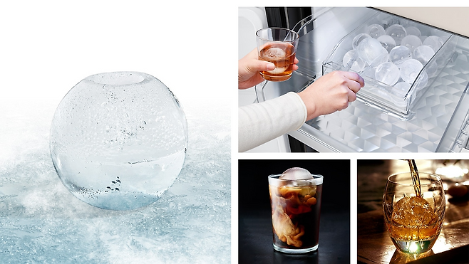 삼성 비스포크 얼음 냉장고는 급수통에 물만 채워 넣으면 하루 3~9개씩 아이스볼이 만들어지며, 아이스 트레이는 이동이 가능해 공간을 더욱 효율적으로 사용할 수 있다.