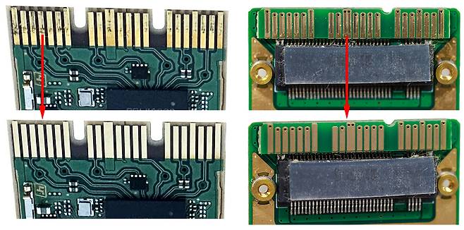 메모리를 자주 꽂았다 뺃다하면 어쩔 수 없이 메모리의 접촉부에 아래와 같이 온갖 이물질이 낄 수 밖에 없습니다.