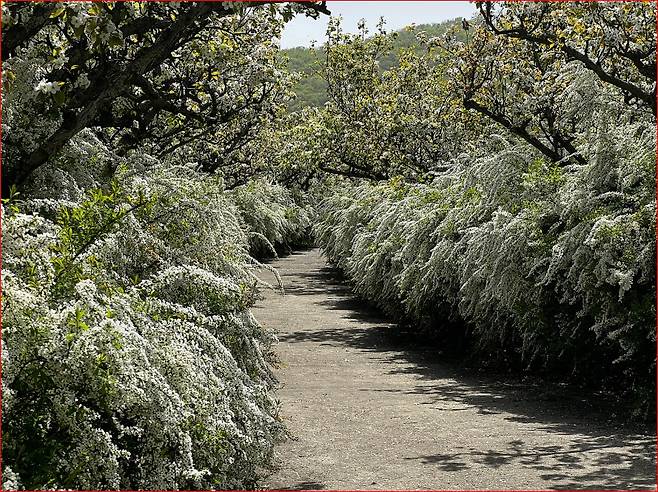 하얀 꽃물결이 흐르는 봄의 정원 보령 ‘무궁화수목원’