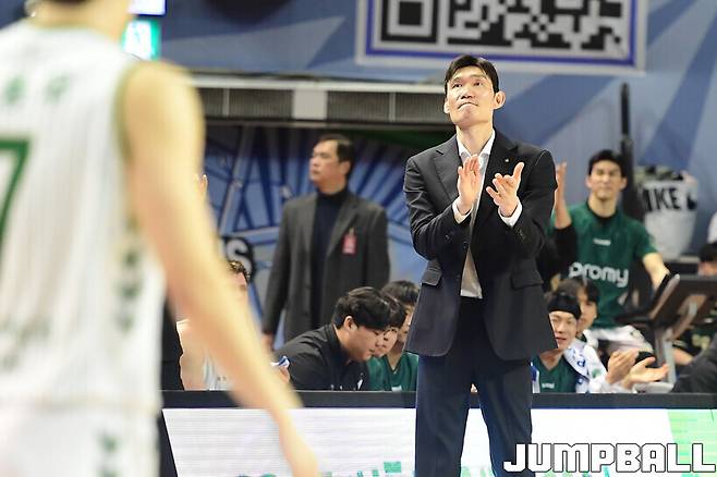이날 승리로 김주성 감독은 ‘역대 24호 통산 100승’을 달성했다. 이에 대해 묻자 “솔직히 몰랐다(웃음). 선수들이 잘해줘야 이길 수 있는 거라 항상 감사하게 생각한다. 시즌 전 ‘나도 성장을 하고 선수도 성장하는 팀’이 되길 원한다고 말했다. 지금처럼 같이 성장하면서 마음이 잘 맞는 팀이 되면 좋겠다”라고 공을 선수에게 돌렸다.