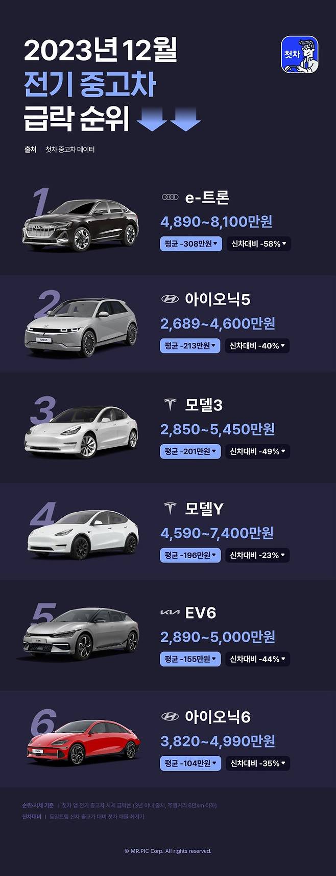 업계에 따르면 2024년 전기차 중고차 시세는 연초 대비 평균 20% 이상 하락했다. 특히 테슬라 모델Y는 3.36%, 현대차 아이오닉5는 1.97%, 기아 EV6는 1.11%씩 매달 지속적으로 떨어지고 있는 상황이다. 이코노믹데일리