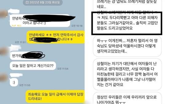 이후 23일 오전에는 상철이 영숙과 교제 중 소개팅한 다른 여성 A씨와 주고받은 메시지, 다른 여성이 영숙에게 상철에 관해 제보하는 DM(다이렉트 메시지) 등을 증거로 공개했다.