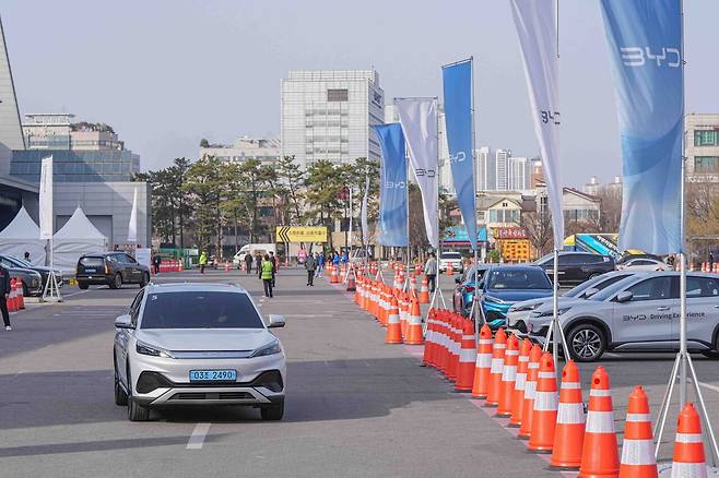 2025서울모빌리티쇼 시승 행사_BYD 아토3중국 전기차 브랜드 BYD의 '아토3'도 시승 대열에 합류했다. 실내공간과 에너지 효율성을 강조한 체험 코스로 구성돼, 글로벌 전기차 강자의 면모를 확인할 수 있다. 시승은 현장 접수를 통해 진행된다.