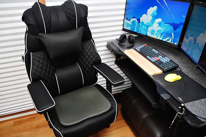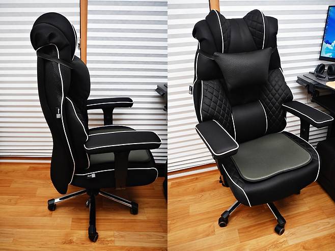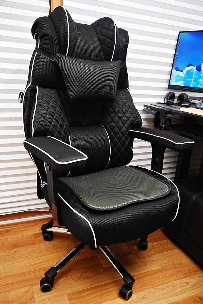 디자인은 물론이고 제공되는 쿠션, 방석 등 앉았을 때 상당히 편안함을 제공했고 의자의 기능 중에서도 각도조절 장력 정도가 마음에 들었습니다.