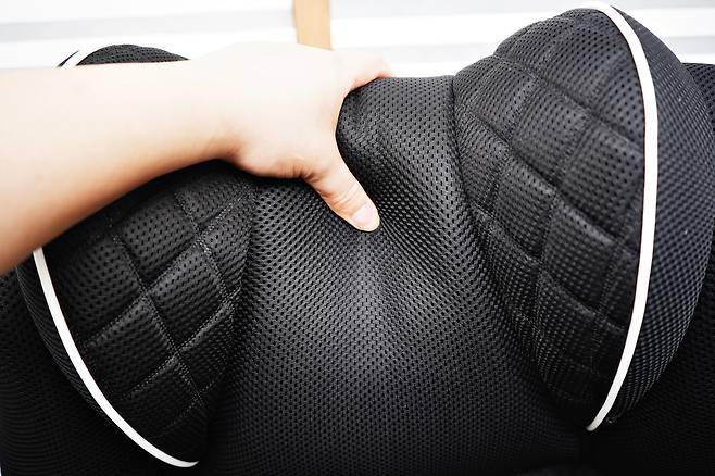 편안하게 앉을 수 있는 방석 부분은 고밀도 라텍스 폼으로 제작되어 복원력이 뛰어나고, 엉덩이를 전체적으로 굴곡에 맞춰 받쳐주는 역할을 합니다. 그리고 메쉬 원단으로 되어있어 통기성도 우수해 사계절 모두 쾌적하게 사용할 수 있습니다.