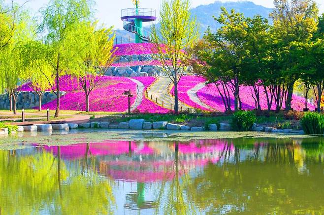 봄에는 100만 본이 넘는 꽃창포가 화려한 군락을 이루며 장관을 연출하고, 여름이면 연꽃과 수련, 수국이 공원을 아름답게 수놓습니다.