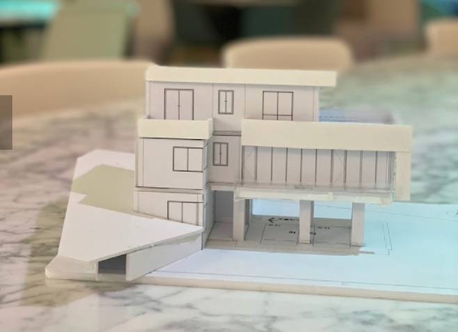 저희 대지는 동-서로 길고 폭이 좁은 편의 모양이라 정남향을 원하는 제게 큰 챌린지였어요. 다행히 서쪽의 산 경사를 이용해서 집을 띄우는 (필로티) 설계안이 나왔고, 여러모로 매우 만족하고 있어요. (경사를 이용한 1층은 지하가 되고, 메인 1층이 실제 2층 정도 높이가 됩니다.)