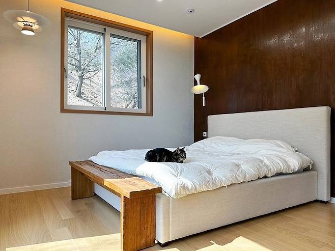집을 필로티로 띄움으로 더 멋진 전망과 많은 일조량을 얻었구요, 산 속에서 만나는 각종 해충,벌레의 진입으로부터 조금 걱정을 덜었습니다. 마지막으로 제가 가장 걱정했던 부분인외부인의 자유로운(갑작스런) 집 내,외의 진출입이 제어가 가능해져서 너무 만족합니다. 저희가 고양이 가족들과 함께 하기에 외부인이 집으로 드나들 때 아이들이 혹시나 통제 밖으로 나가진 않을까 매우 예민한 편이거든요.