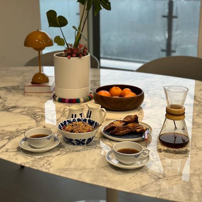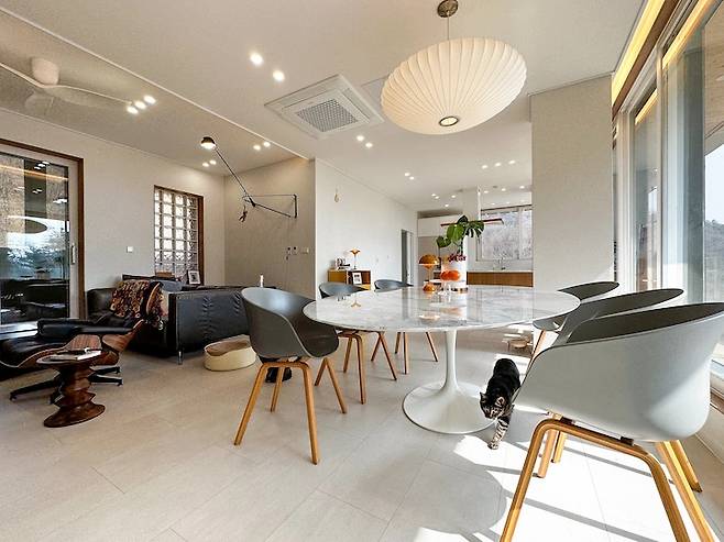 테이블은 제가 아주 오래전부터 갖고 싶었던 에로사리넨 디자이너의 테이블로 집을 짓겠다 마음 먹었을 때 가장 먼저 픽한 제품이었어요. 그래서 집의 배치도 테이블이 중심이 되었다 해도 과언이 아니네요. 막상 배송이 왔을 땐 생각보다 더 큰 테이블에 조금 당황했지만 이 곳에서 보내는 시간이 날이 갈수록 늘어나 잘 선택했다 싶어요.