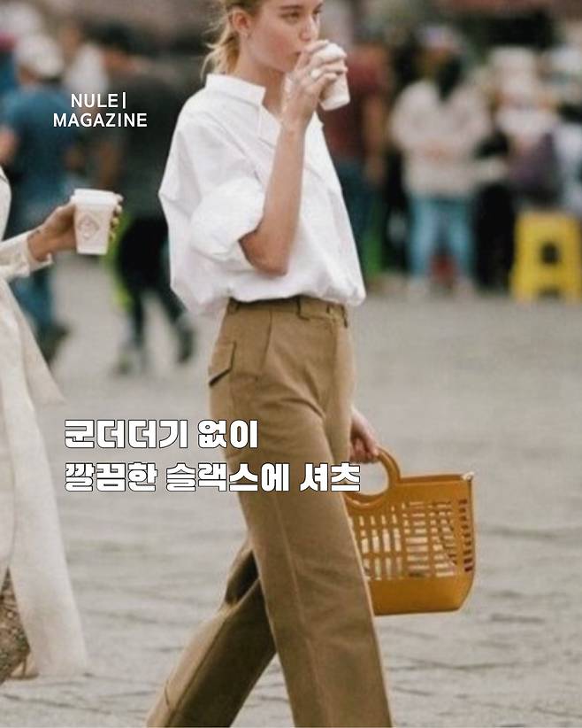 군더더기 없이 깔끔한 슬랙스에 셔츠 하나 툭!
