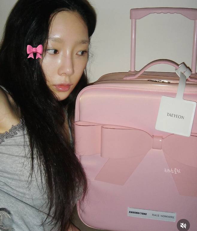 핑크가 찰떡인 태연은 캐리어 옆에만 있어도