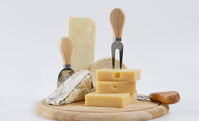 치즈 역시 콜레스테롤 함량이 높은 식품으로 알려져 있다. 몬테레이 잭 치즈 한 조각(21g)에는 18.7mg의 콜레스테롤이 포함되어 있다. 소량의 치즈는 건강에 큰 영향을 미치지 않지만, 자주 섭취할 경우 식이 콜레스테롤의 주요 원인이 될 수 있다. 특히 풀팻 유제품은 포화지방이 많아 LDL 콜레스테롤 수치를 높일 수 있어 저지방 또는 무지방 유제품으로 대체하는 것이 권장되고 있다.