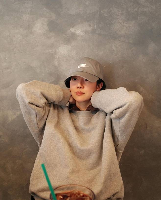 임수정은 같은 포즈로 서로 다른 매력의 맨투맨과 캡 모자 코디를 선보여 보는 이들의 감탄을 자아냈습니다.