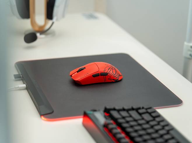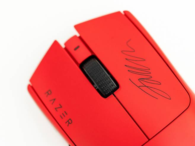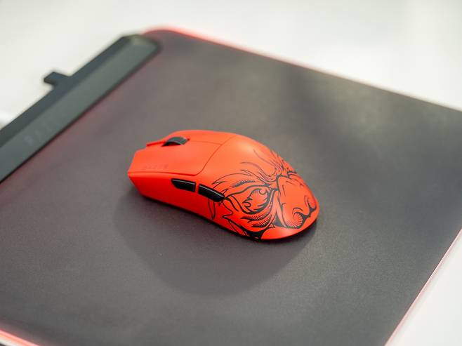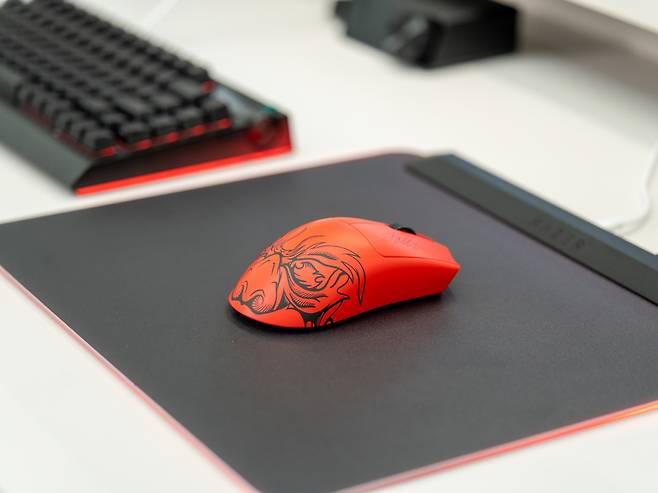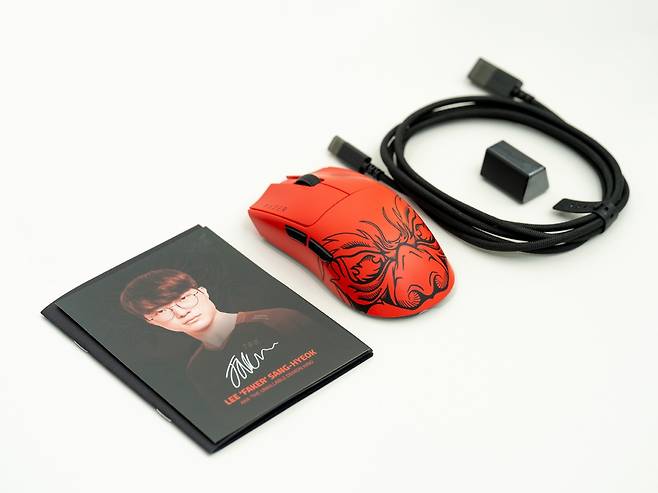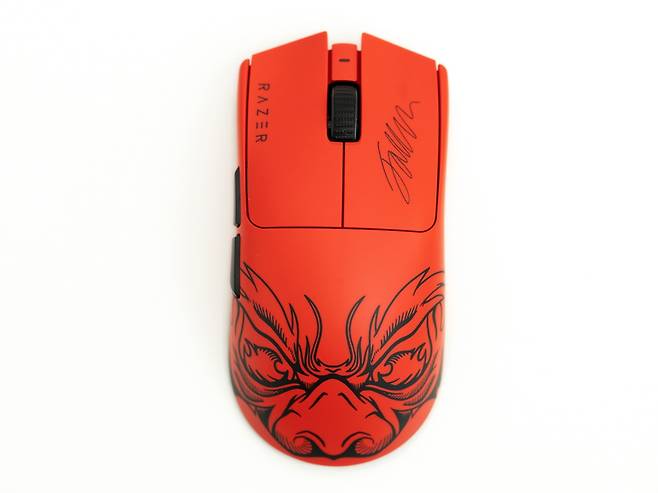 가장 눈에 띄는 특징은 페이커 에디션만의 강렬한 붉은색 컬러와 마우스 후면에 그려진 특별한 그래픽입니다. T1의 시그니처 색상인 붉은색과 페이커의 상징성을 담은 디자인은 일반 제품과 확실히 차별화됩니다. 후면에는 페이커의 플레이 스타일을 상징하는 그래픽이 또 버튼에는 그의 서명이 각인되어 있어 소장 가치를 더합니다.