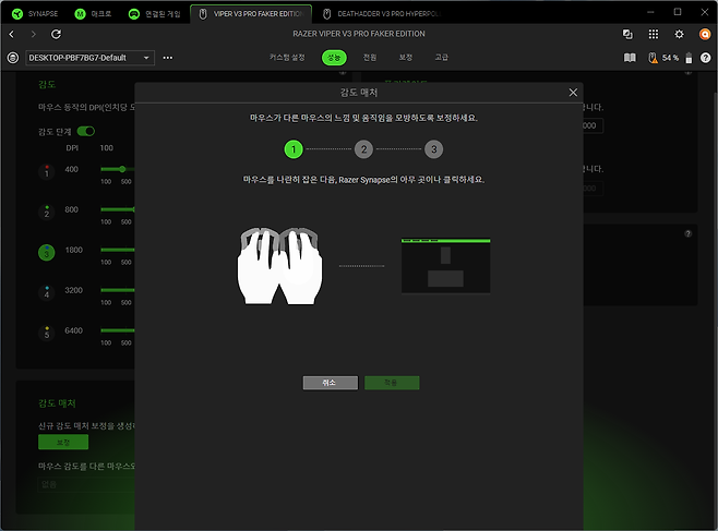 보정 : 마우스 패드 표면에 따른 센서 최적화