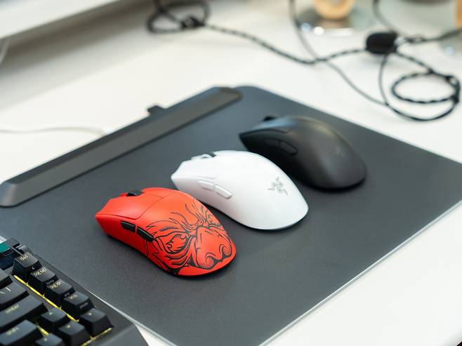 마우스는 팜그립, 클로그립, 핑거팁 그립까지 다양한 그립 스타일에 적합하게 설계되었는데요, 저는 손이 상당히 작은 편이지만 바이퍼 V3 PRO 화이트에디션을 메인 마우스로 사용해와서 그런지 팜그립으로 잘 사용하고 있고, 앞서 설명한 하우징의 코팅 재질 덕분에 손바닥에 착 감기는 느낌이 상당히 우수합니다.