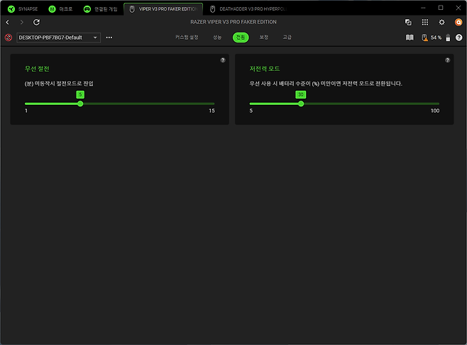 이외 RAZER Cortex는 게임 실행 시 시스템 성능을 최적화하고 불필요한 프로세스를 종료하여 게임에 시스템 리소스를 집중시키는 소프트웨어이며, RAZER Axon은 RGB 조명 효과를 관리하는 소프트웨어지만, Viper V3 PRO는 RGB 조명이 없어 필수 설치 항목은 아닙니다.